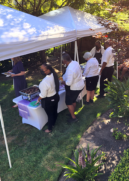 Our cobbler is now glowing after the joining of the butter and sugar on top of the crust after it finishes baking. This is what a Peach Cobbler should look … and taste like!